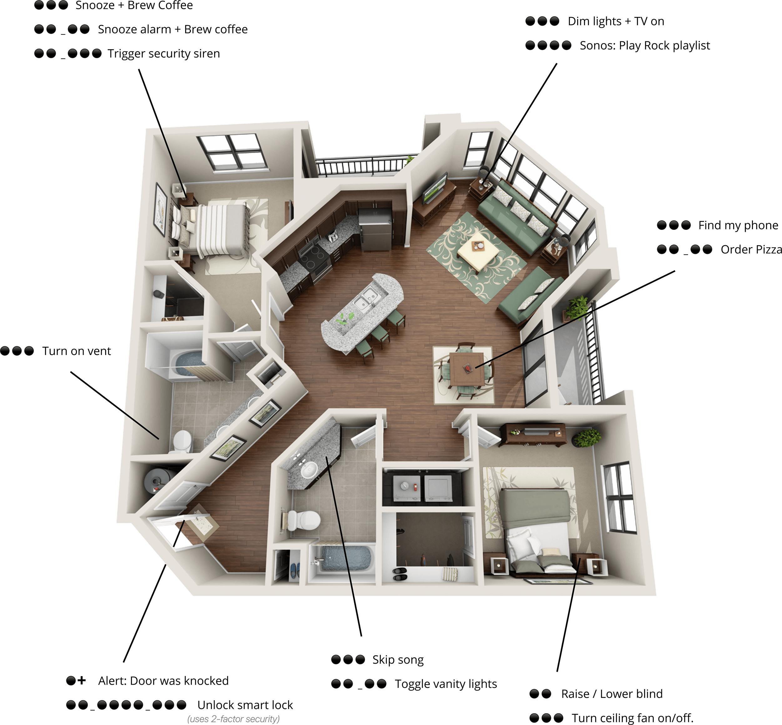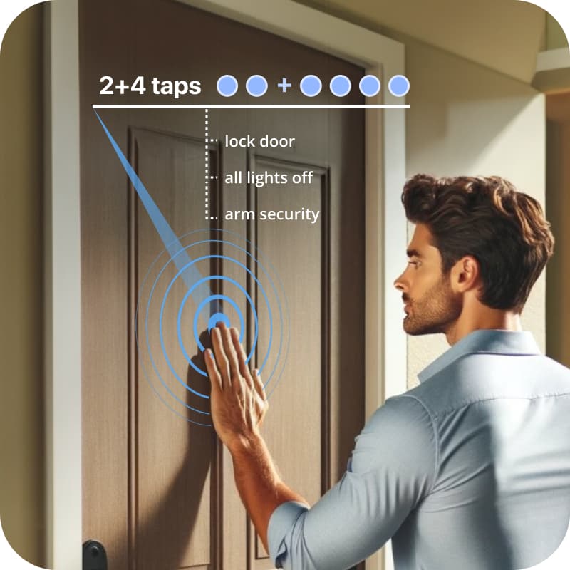 Many smart switches/buttons only perform a single on/off function, or are limited to only a few press patterns. Knocki can provide quick and easy control of a few functions for most users, but power users can go wild with up to 10 gestures per Knocki-enabled surface, allowing their entire tables, walls, furniture and other surfaces to control their favorite functions.